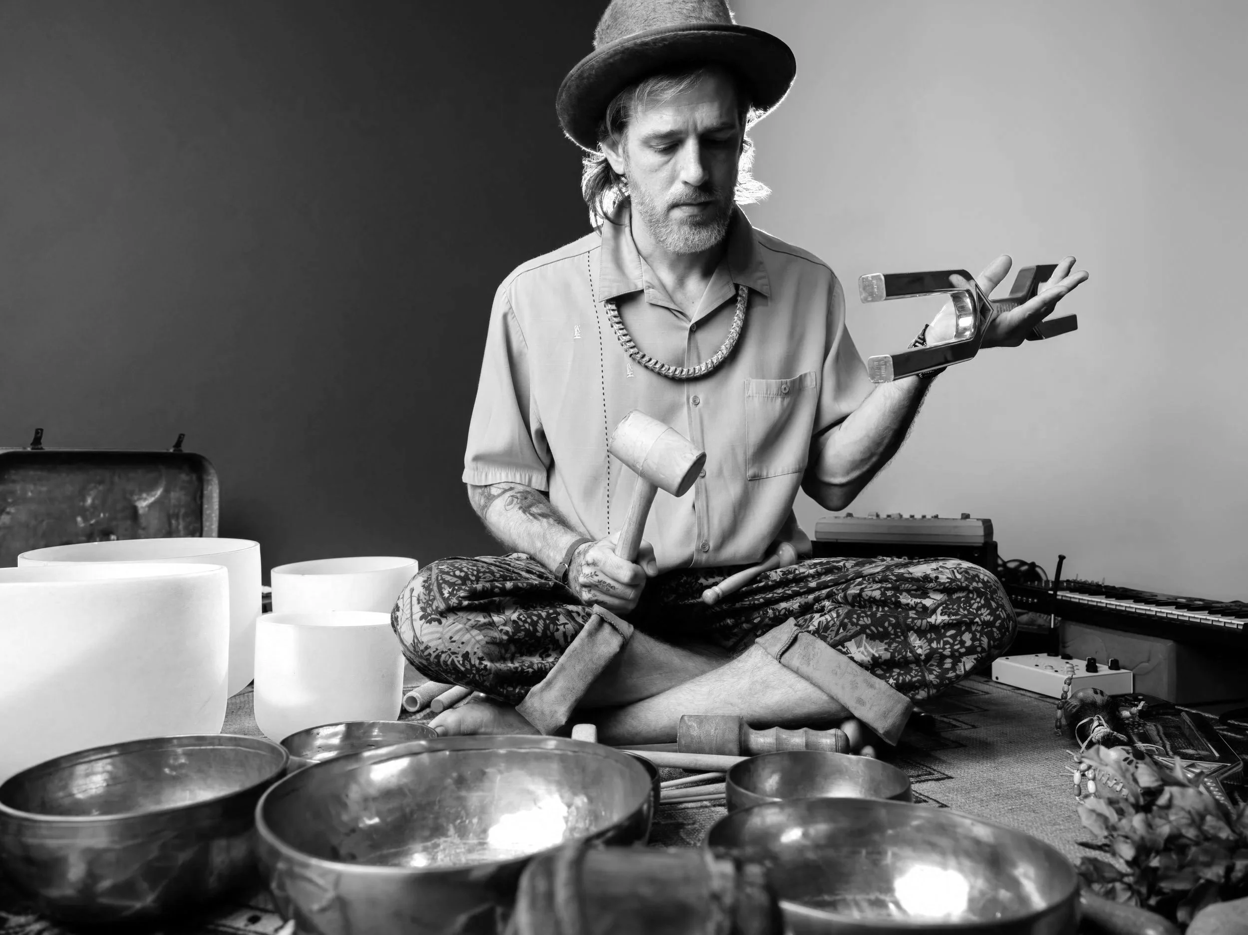Experience healing soundscapes of song, singing bowls, tuning forks, and drumming, interplayed with field recordings, circuit bent synthesizers and homemade droning devices.