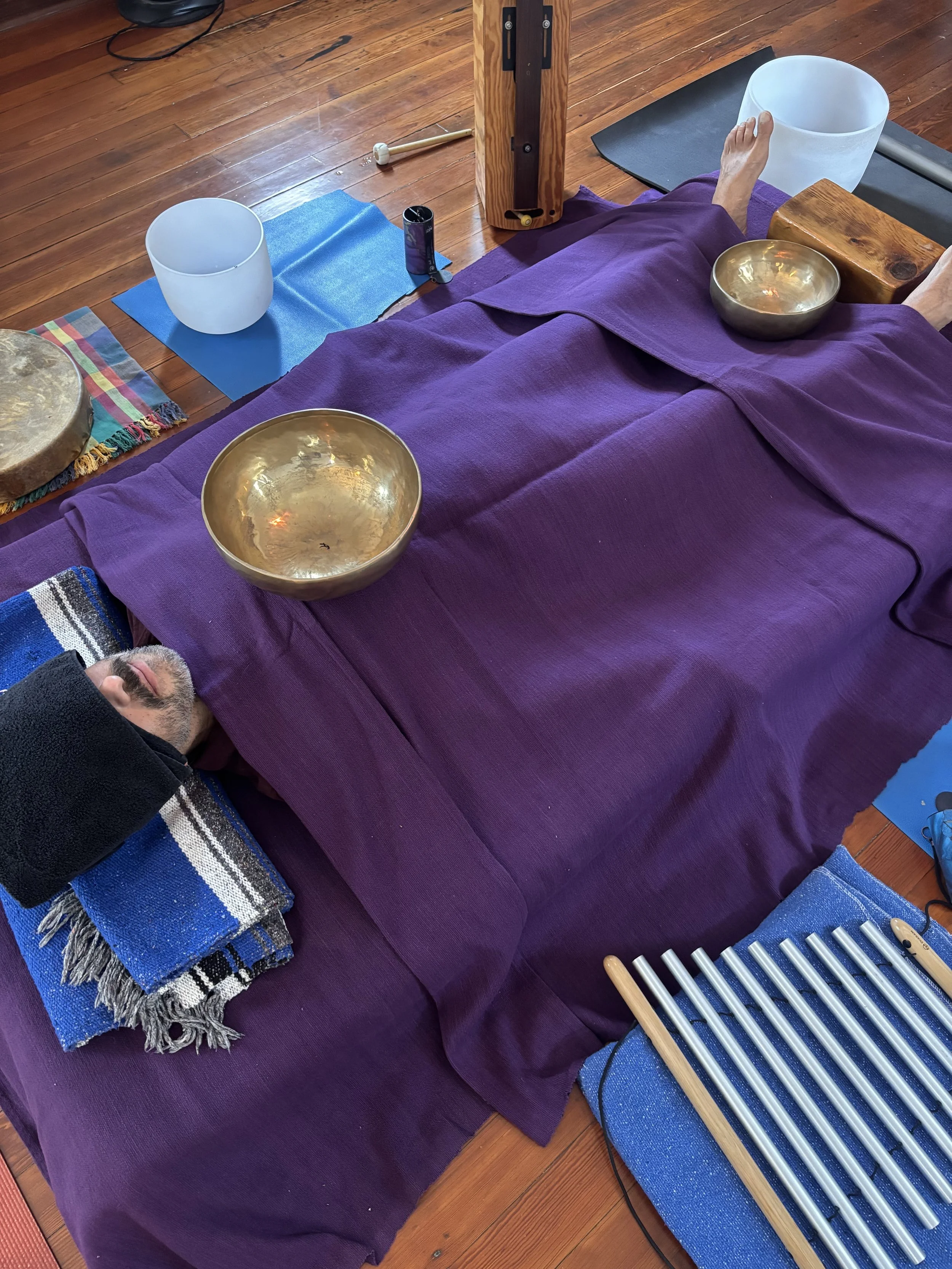 Sound therapy treatment requires both active and passive participation. The client passively enters a relaxed state by laying down and slowing their breath. The body then responds by actively listening and responding at a cellular level, becoming more aware of the sounds and vibrational energy around them. This allows for an uplift in mood and decreased anxiety. Similarly to the focus found from mediation and mantra, sound becomes a bridge to stillness.